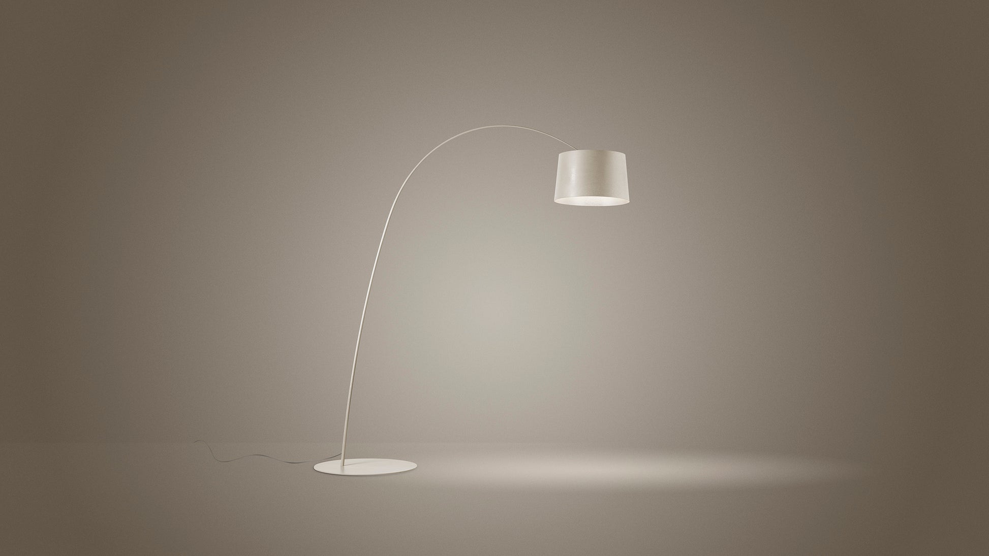 A fine arched line, a flexible sign which by magic suspends a large diffuser in mid-air: this is Twiggy, a floor lamp that meets multiple setting and lighting requirements.